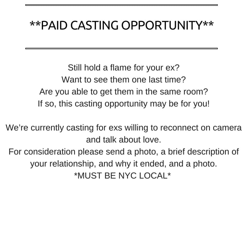 Rob Bliss is seeking NYC ex’s who are willing to reconnect on camera.