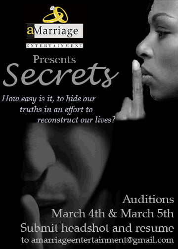 AUDITIONS: March 4-5,2016 5pm-9pm. Specific location and audition times will be arranged upon review of submission. All actors need to prepare a 2 minute monologue and cold reading.