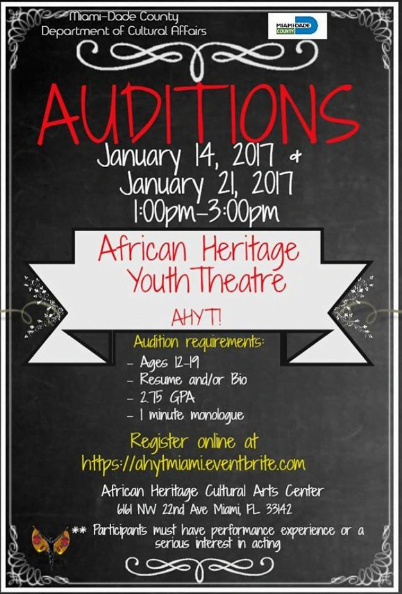 The African Heritage Youth Theatre (AHYT!) is the premier theater apprenticeship program at the African Heritage Cultural Arts Center for youth, ages 11-19, who are serious about learning the craft of theater.