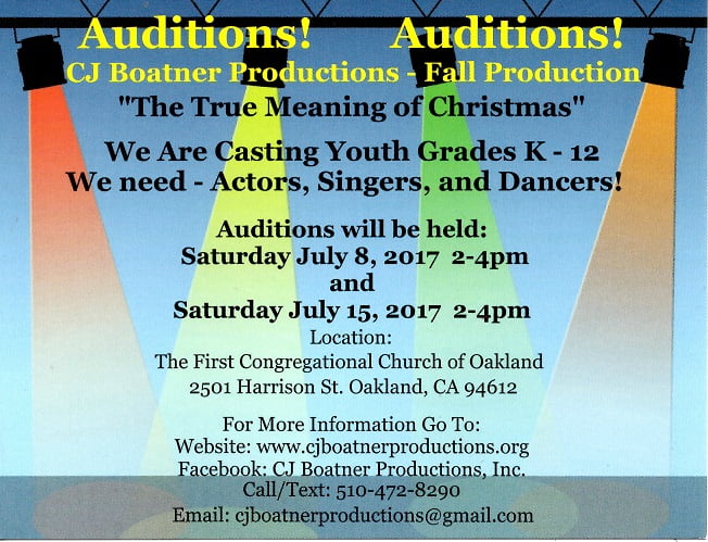 Auditions will be held: Saturday July 8th and Saturday July 15th 2017 2-4 pm.
