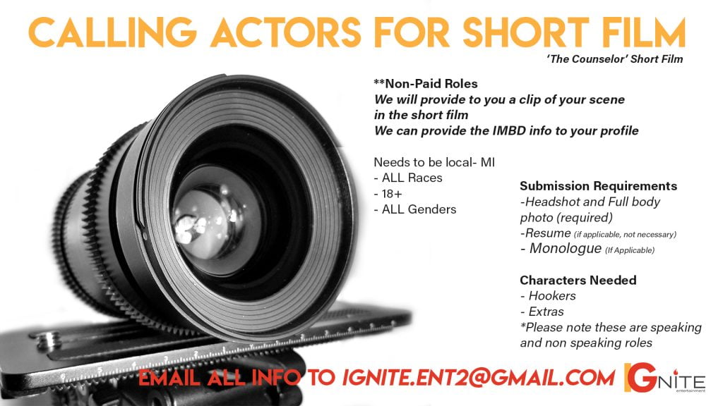 **Non-Paid Roles We will provide to you a clip of your scene in the short film We can provide the IMBD info to your profile