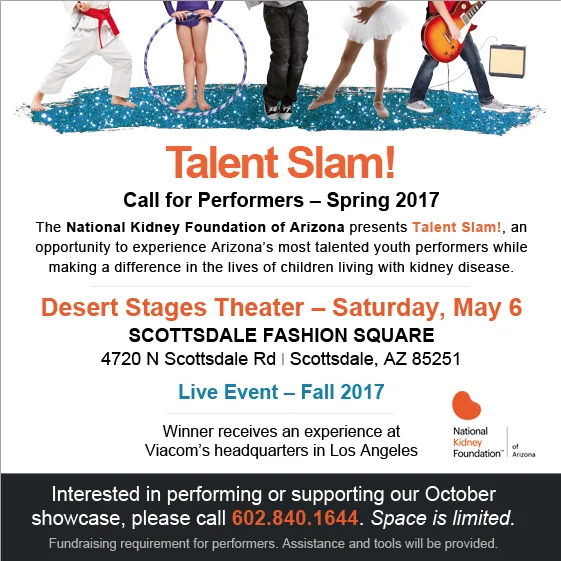 This casting notice was posted by: National Kidney Foundation of Arizona Talent Slam!