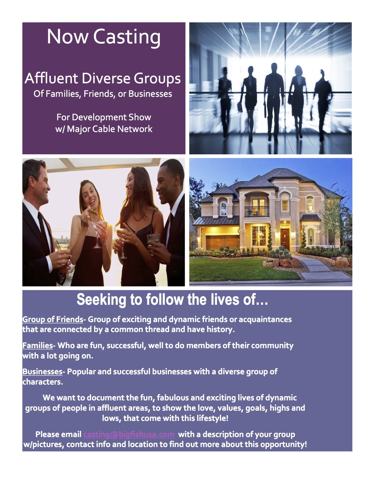 Now Casting Affluent Diverse Groups Of Families, Friends, or Businesses For Development Show w/ Major Cable Network.