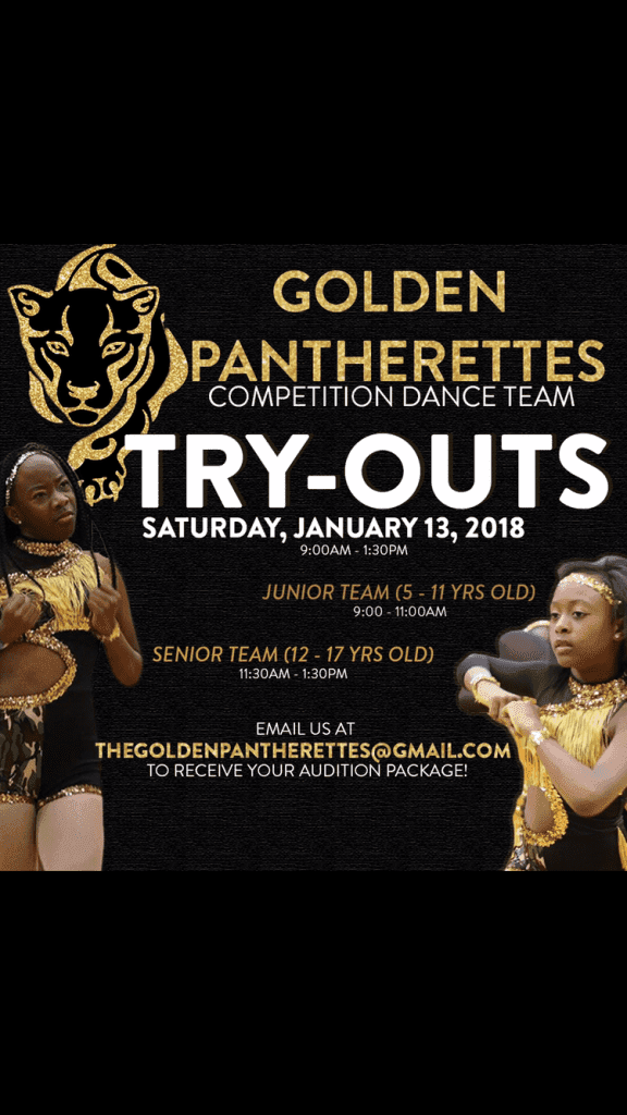 The Golden Pantherettes is looking for new talent from the ages of 5-17 to join our hip-hop majorette team! This team competes and perform throughout the year locally and out of state. We are looking for talent that can add to our team with background skills in ballet, jazz, hip-hop, gymnastics and more.