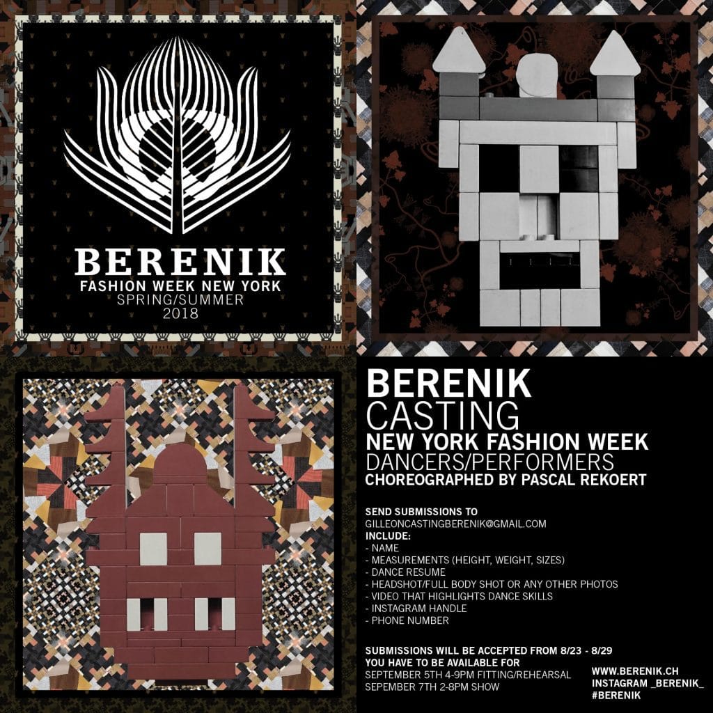 This casting notice was posted by: Pascal Rekoert, choreographer BERENIK & Flexicurve