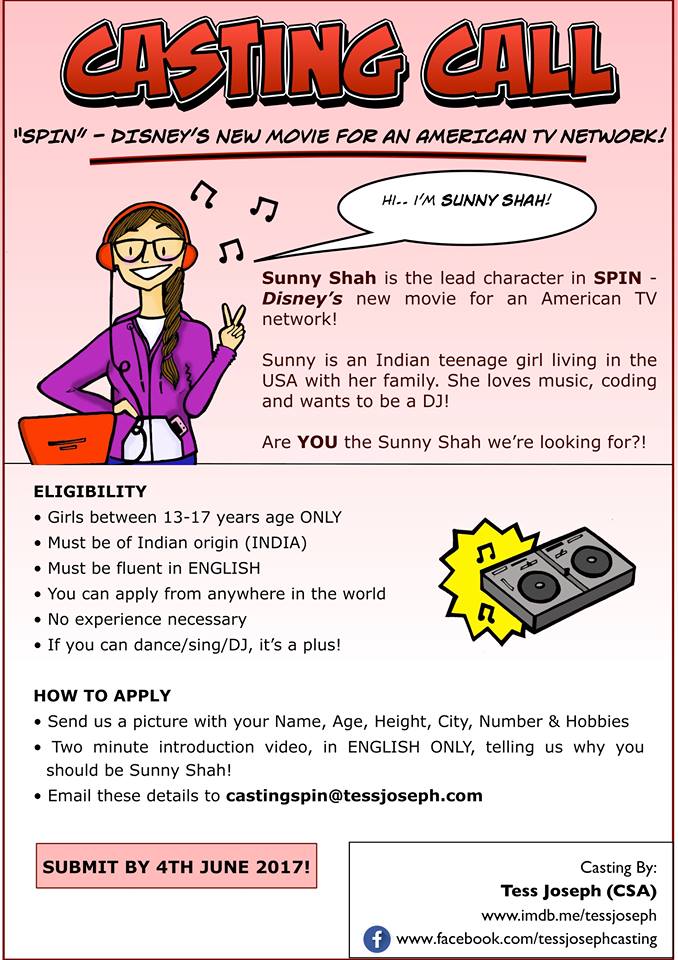 Casting for Disney’s SPIN is still on! Last date for submission extended to June 4th!