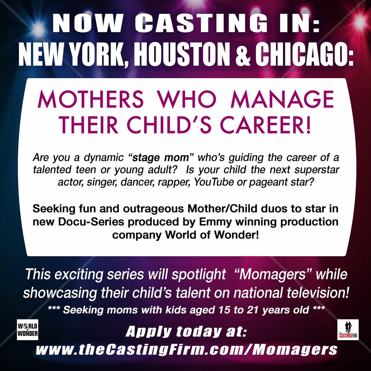 Apply today at: www.thecastingfirm.com/Momagers or