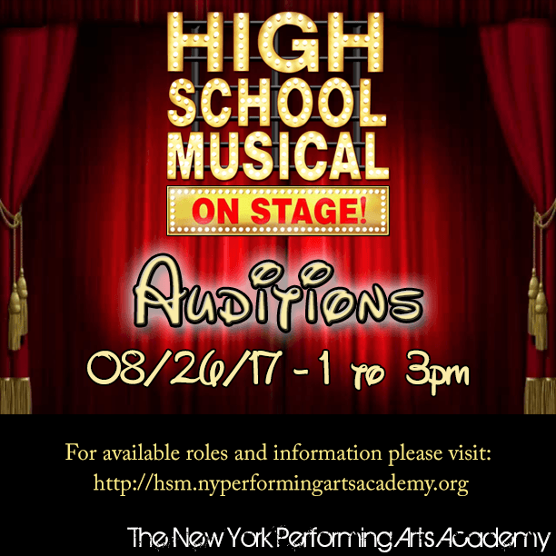 Disney Channel’s smash hit movie musical comes to life at The New York Performing Arts Academy’s production of Disney’s High School Musical! Troy, Gabriella and the students of East High must deal with issues of first love, friends and family while balancing their classes and extra curricular activities.