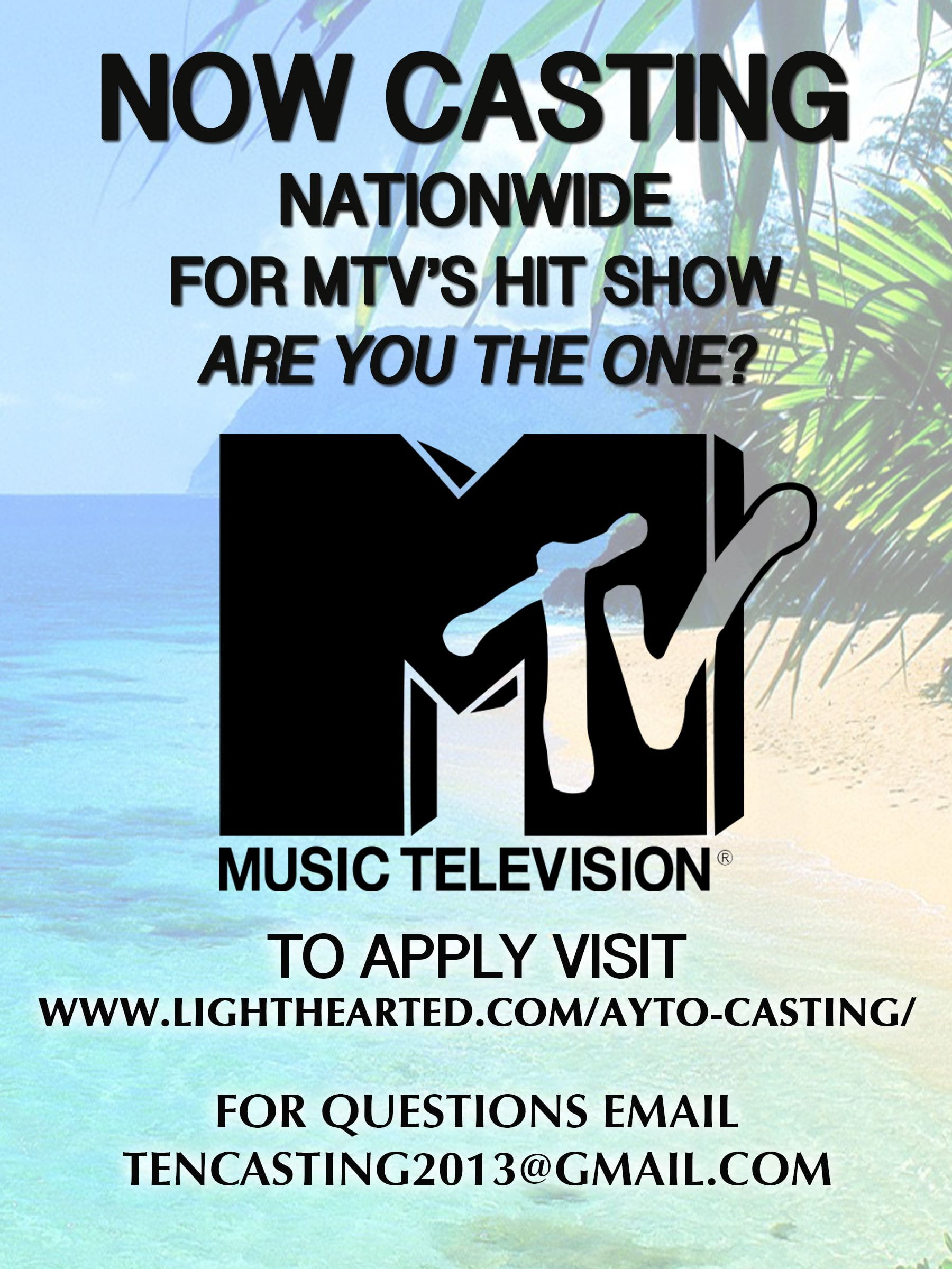 Ready to meet your perfect match? MTV’s ARE YOU THE ONE? Apply now for your chance to find the love of your life and compete for your share of a huge cash prize! You must be at least 21 years of age by January 1st, 2016. Also, you must be SINGLE, have a big personality and be looking to make a genuine connection.