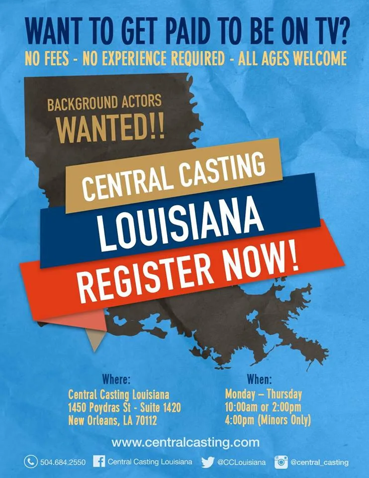 Registration details and required documents can be found on our website: https://www.centralcasting.com/nola/register/