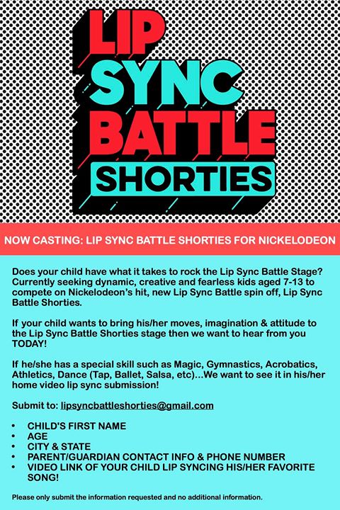 Check out the kids casting call below for all the details on how to get on Nick’s Lip Sync Battle Shorties.