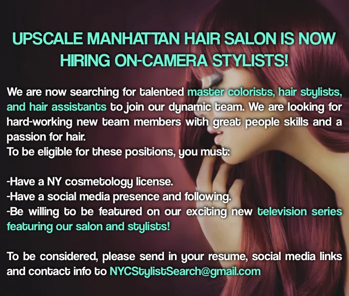 UPSCALE MANHATTAN HAIR SALON IS NOW HIRING ON-CAMERA STYLISTS.