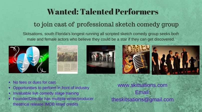 This casting notice was posted by: Skitsations Sketch Comedy Troupe