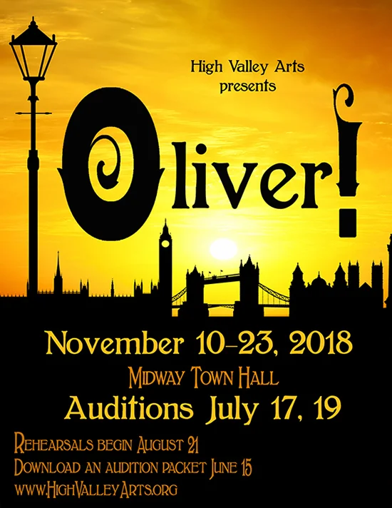 Auditions July 17 & 19m, 7-9 pm; July 21 1-3 p.m. Download audition packet at www.HighValleyArts.org with information about rehearsals, performances, and cast of characters. Prepare a 16-measure song in the style of the show. Rehearsals begin August 21. Show performs Nov. 10-24. No shows on Thanksgiving, Sundays, or Tuesdays.