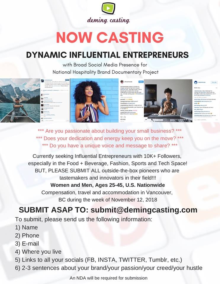 Feel free to share the attached FLYER with your social circles and ask them to submit the requested information to submit@demingcasting.com ASAP. An NDA will be required to discuss the details (including compensation).
