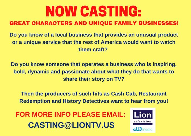 Lion TV is looking for eccentric people who run some type of business operation, or that have a CRAZY hobby! If you or someone you know is interested, please email CASTING@LIONTV.US with a little background info about the business/hobby. *Casting is nationwide and filming location is TBD. Filming will take place in the fall of this year. Thanks!