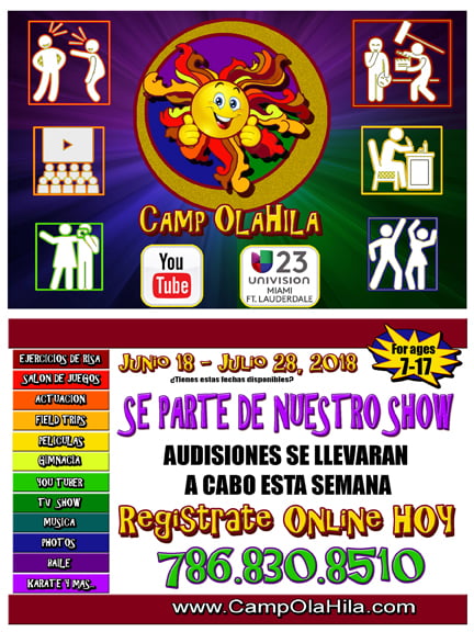 We will conduct the audition using the lines of CAMPISTA #11, which is one of the leading roles. However, we will be looking for all types of personalities, so we can assign the other roles to the actor, that matches that personality. We want out going kids, that can play a shy kid, and that is camera freindly as well as being COACHABLE!. The story is similar to the TV Show ” Bunked “.,..but in Spanish.