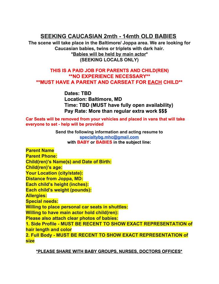 Please note that you must be local to the Baltimore area in order to be considered for any of the roles.