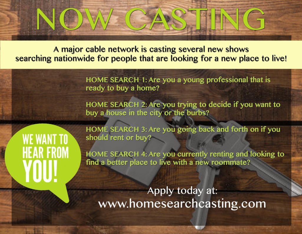 The shows are looking for 3 different scenarios… those looking to buy a home, those trying to decide whether to buy or rent and where, plus those looking for a new place with a roommate.