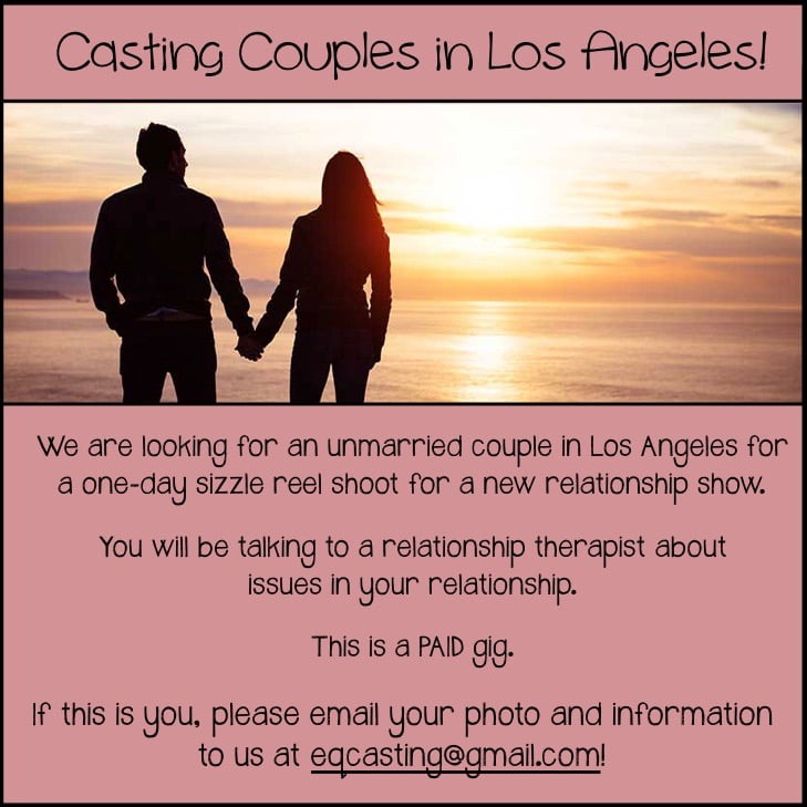 Send a picture and information about you, your partner (name, age, how you met, how long you’ve been together) and a picture to eqcasting@gmail.com with the subject header “Relationship Show”.
