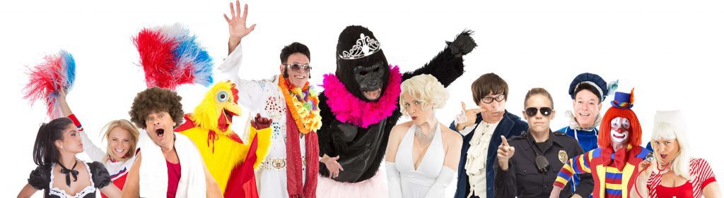 Popular characters include: Marilyn Monroe, Nurse, Cop, Elvis, Austin Powers, Gorilla in a Tutu, Phantom of the Opera, Nerd, and many more.