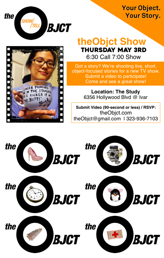 On Thursday May 3rd, at the Study in Hollywood (6356 Hollywood Blvd, Los Angeles, CA 90028) we are shooting Objct stories. You can be in the audience AND you can also be a participant