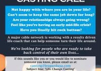 Strike A Match Location: Los Angeles and Surrounding Areas Type: Reality TV NOW CASTING UNLIKELY COUPLES FOR A NEW AND EXCITING GAME SHOW ON A MAJOR CABLE NETWORK! Do you make an unlikely couple? Do strangers never assume you are partners? Are you fun and energetic? Do you think you have what it takes to… Read More »