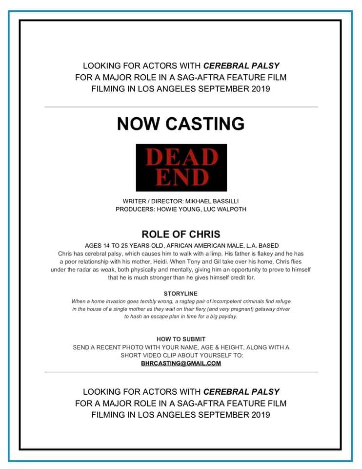 LOOKING FOR ACTORS WITH CEREBRAL PALSY FOR A MAJOR ROLE IN A SAG-AFTRA