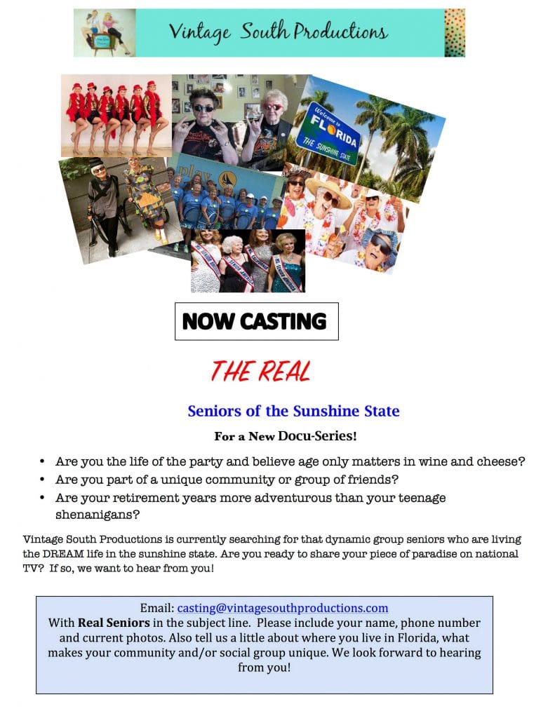 Vintage South Productions is currently searching for that dynamic group seniors who are living the DREAM life in the sunshine state. Are you ready to share your piece of paradise on national TV? If so, we want to hear from you!