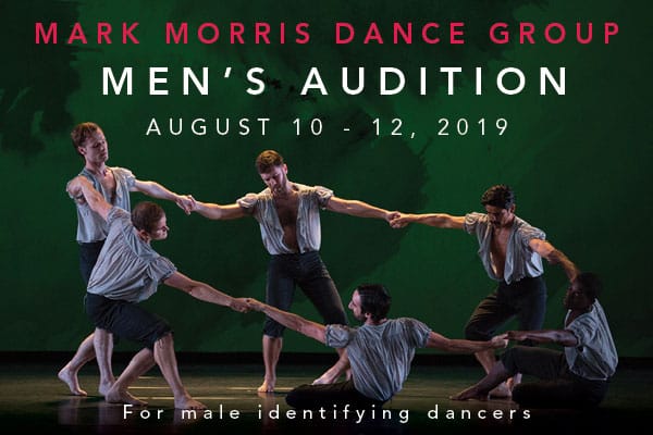 The Mark Morris Dance Group will hold auditions August 10-12, 2019 for dancers who identify as male for full-time company positions.