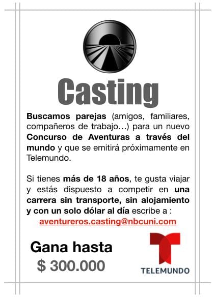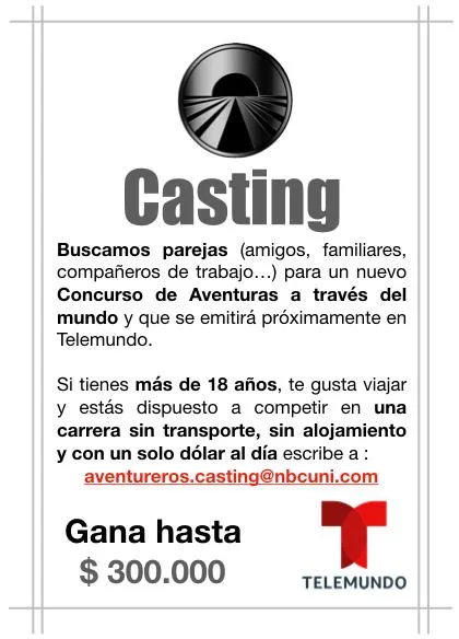 This casting notice was posted by: TELEMUNDO / AVENTUREROS