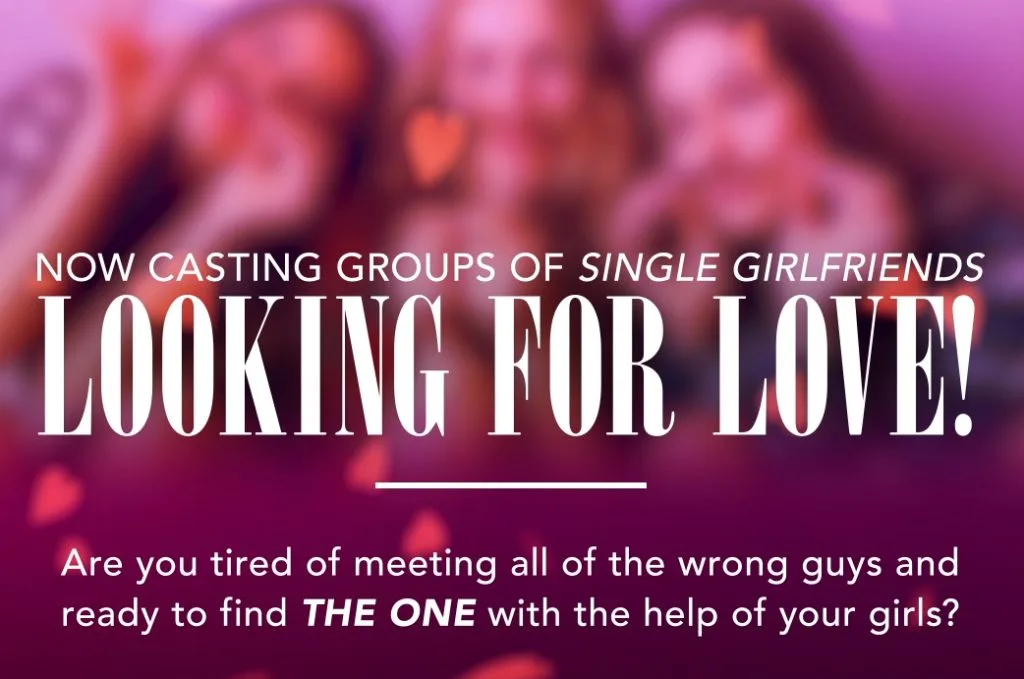 A major cable network is casting groups of 3-4 girlfriends who want to look for love alongside their best friends. If you are currently single, over the age of 21 apply now!