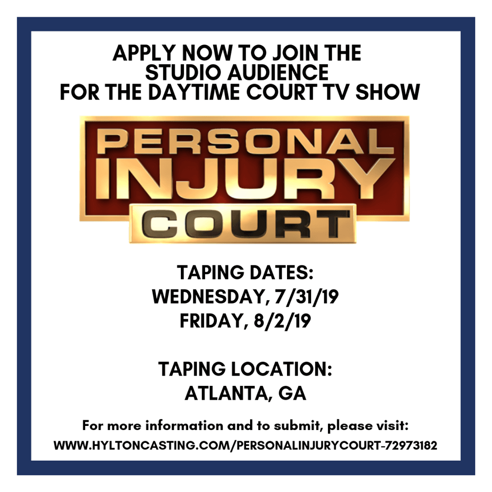 A new court show, Personal Injury Court, is in production in the Atlanta area and there is a casting call out for area locals that have a bit of extra time in the day and would like to work as paid audience members on the show.