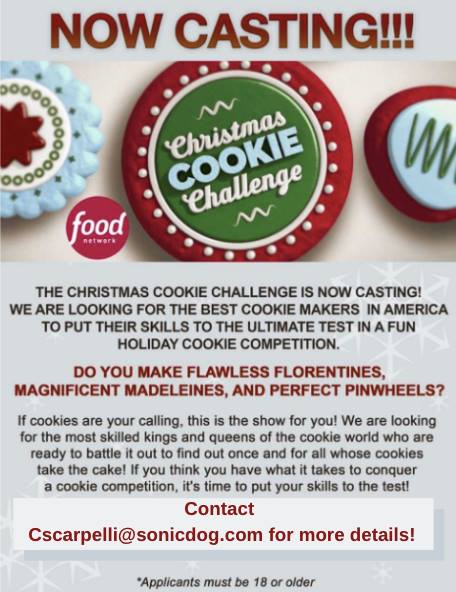 If so, read on for a chance to enter the Christmas Cookie Challenge reality show and possibly win. If its time to put those skills to the test, see the casting notice below for all the details.