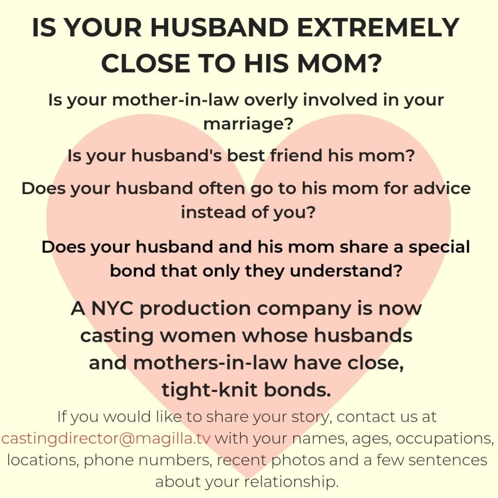 A NYC production company is now casting women whose husbands and mothers-in-law have close, tight-knit bonds.