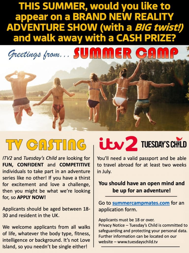 SUMMER CAMP – ITV2’s hottest new adventure & reality series seeks contestants!