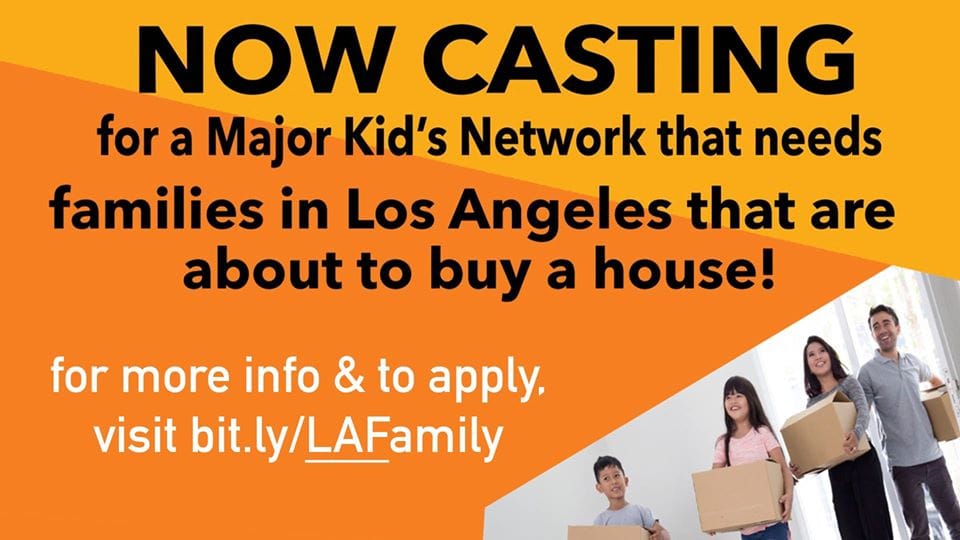 A Major Kids’ Network is searching for families in Los Angeles who are about to buy a house.
