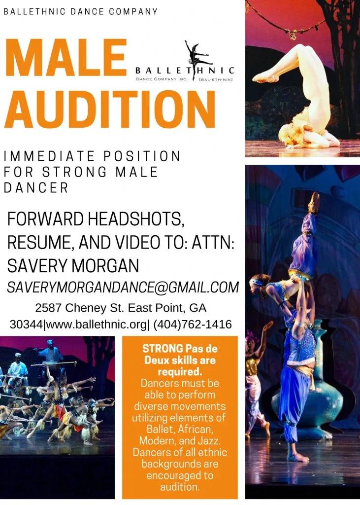 Dancers must be able to perform diverse movements utilizing elements of ballet, African, Modern and Jazz dance styles. Dancers of all ethnic backgrounds are encouraged to audition.