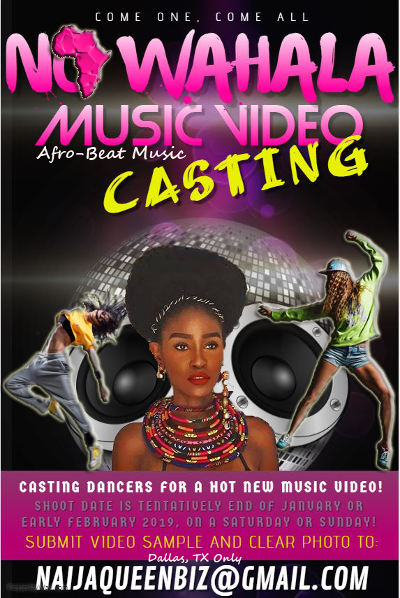 CASTING THE FUN “NO WAHALA,” AFRO-BEAT MUSIC VIDEO SHOOT. MUST BE ABLE TO LEARN CHOREOGRAPHY. NEED 2 TO 3 WOMEN.