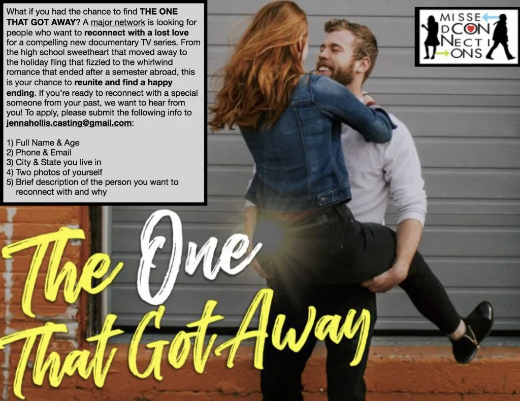 What if you had the chance to find THE ONE THAT GOT AWAY? A major network is searching for people who want to reconnect with a lost love for a compelling new documentary TV series.