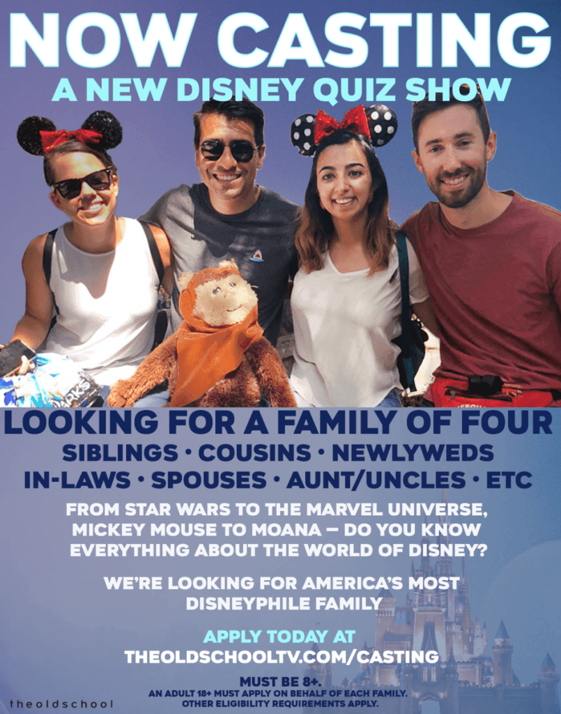 Disney is looking for families of all different makeups including extended and modern families that can take part in a new Disney+ quiz / game show.