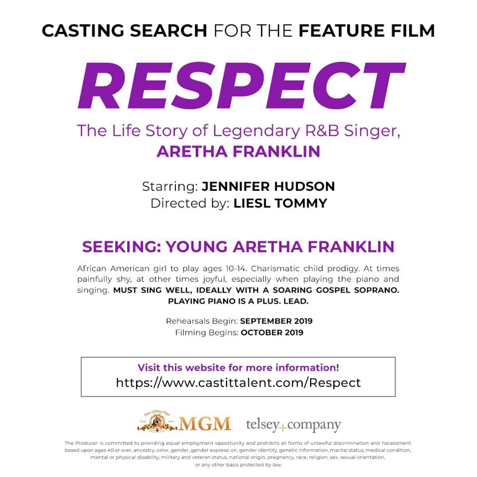 A movie about Aretha Franklin is now in the works and there is a talent search on for a child to play a young Aretha.