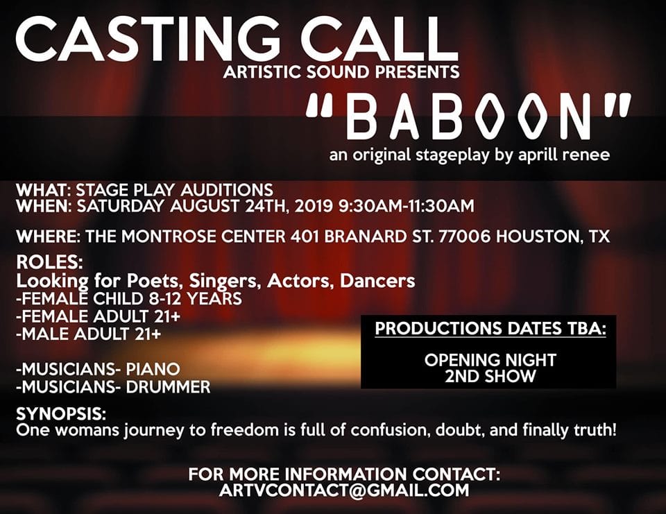Come out, Audition to be in the soon hit Stage Play #BABOON