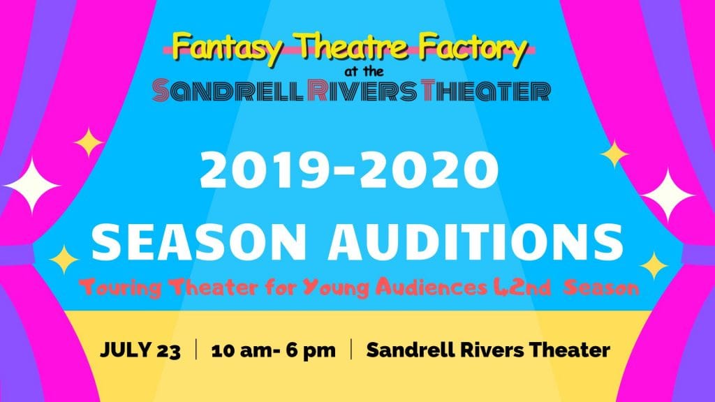 Fantasy Theatre Factory will be hosting its 2019-2020 season auditions for its Touring Theater for Young Audiences Shows on July 23rd, 2019 at the Sandrell Rivers Theater.
