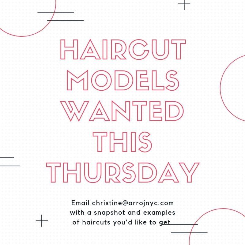 To be considered, please email christine@arrojonyc.com asap with contact info, a recent snapshot and examples of haircuts you’d like to get