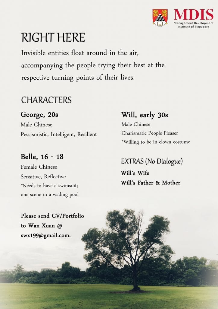 Hello, I am a final year student @ MDIS studying Broadcast Media Production. I am casting for talents for a short film story I wrote about characters dealing with the sadness in their lives. The short film hopes to convey the message that life is trying, but life is trying.