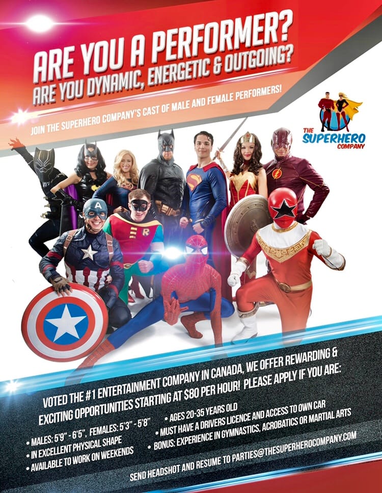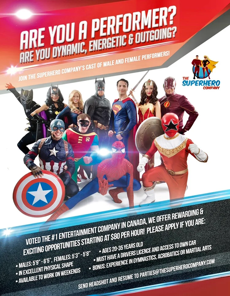 CASTING: The Superhero Company is looking for male performers for our upcoming projects.