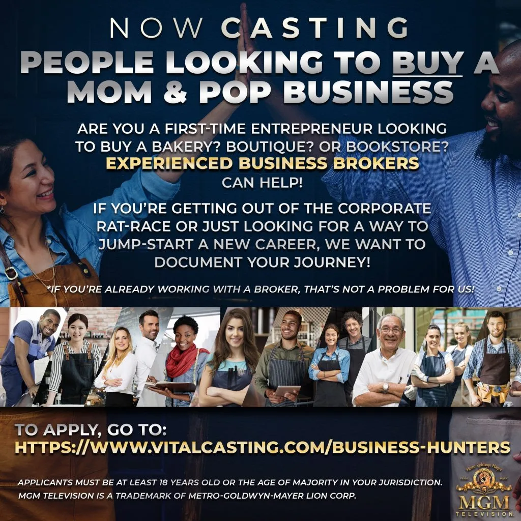 TV show producers are casting for folks that are looking to buy a mom & pop business or start one of their own. Do you need some help from an experienced business broker? A TV show wants to document your journey.