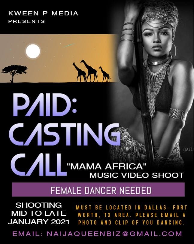 “MAMA AFRICA” MUSIC VIDEO : Female Dancer Needed