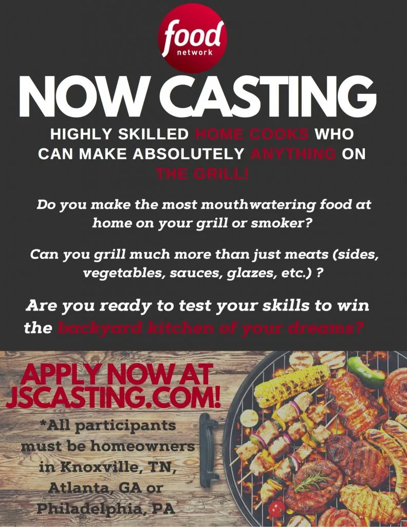 Food Network is now casting highly skilled HOME COOKS who can make absolutely ANYTHING on THE GRILL!